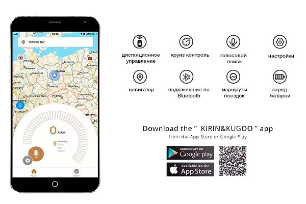 • Приложение KUGOO APP для электросамоката продемонстрирует вам пробег, уровень заряда батареи, текущую скорость и многое другое.